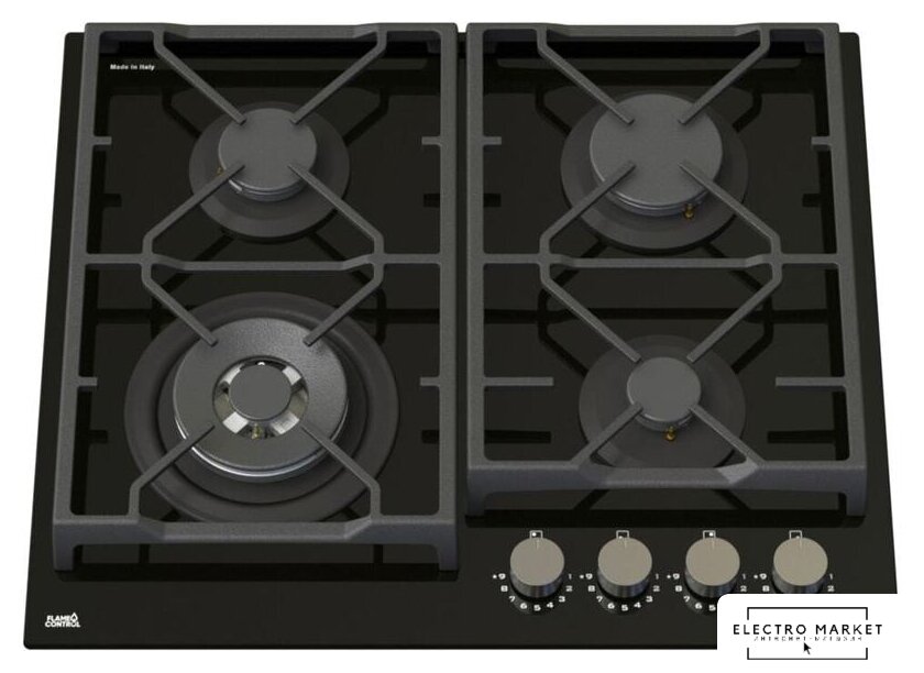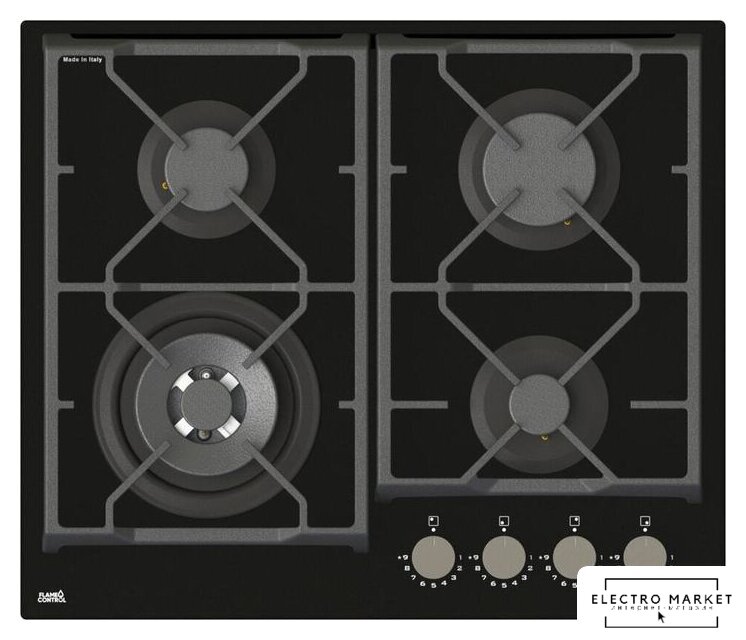 газовая на 4 конфорки, нержавеющая сталь, мощность: 8550 Вт, автоматический электроподжиг, газ-контроль, решетки: чугун, независимая установка, размеры (ШхГ): 59.5x51 см