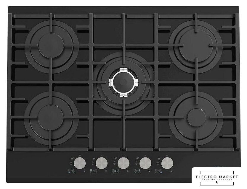 газовая на 5 конфорок, нержавеющая сталь, мощность: 7500 Вт, автоматический электроподжиг, газ-контроль, решетки: чугун, размеры (ШхГ): 70x51 см