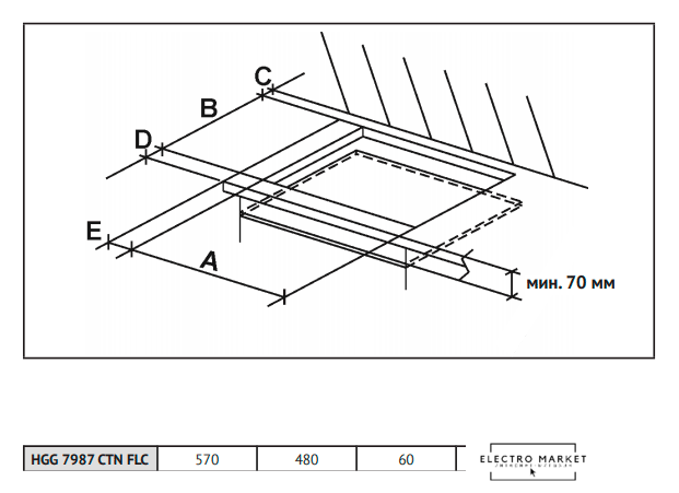 газовая на 4 конфорки, закаленное стекло, мощность: 8000 Вт, автоматический электроподжиг, газ-контроль, решетки: чугун, независимая установка, размеры (ШхГ): 59x52 см