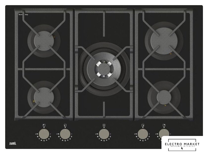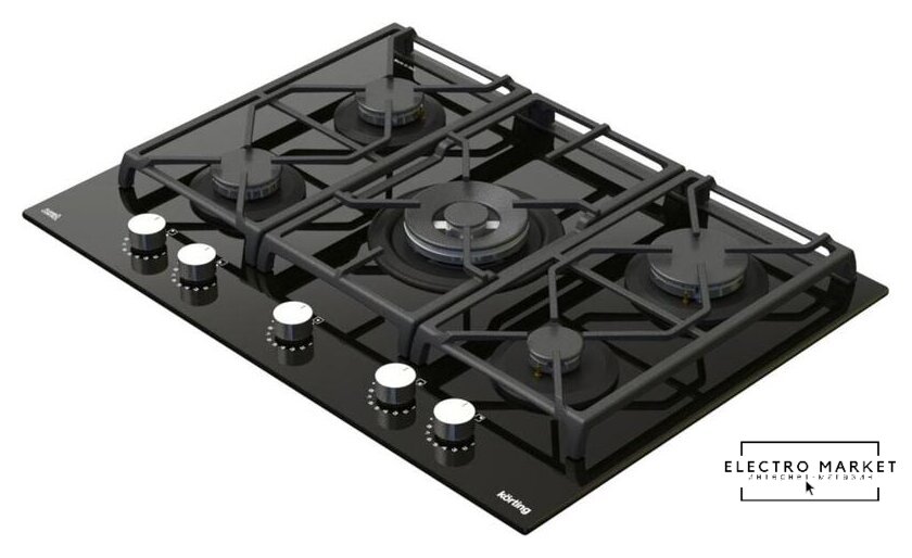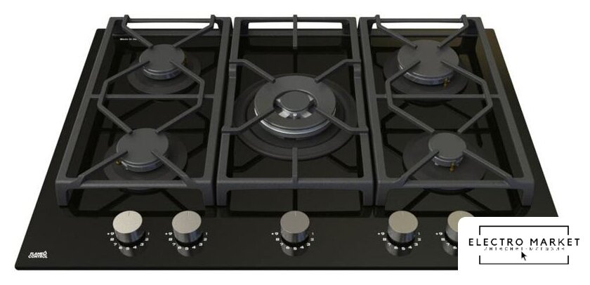 газовая на 5 конфорок, нержавеющая сталь, мощность: 12500 Вт, автоматический электроподжиг, газ-контроль, решетки: чугун, независимая установка, размеры (ШхГ): 91.5x52 см