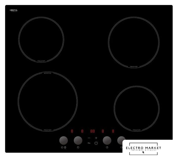 индукционная на 4 конфорки, cтеклокерамика, мощность: 8600 Вт, независимая установка, размеры (ШхГ): 59x52 см