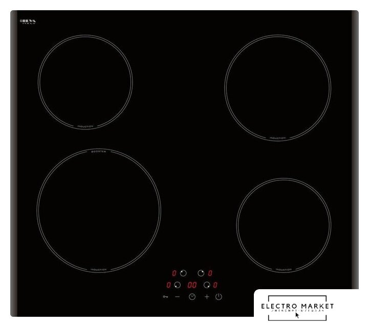 индукционная на 4 конфорки, cтеклокерамика, мощность: 7400 Вт, независимая установка, размеры (ШхГ): 59x52 см