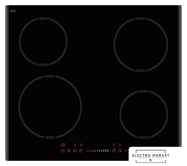 индукционная на 4 конфорки, cтеклокерамика, мощность: 7400 Вт, независимая установка, размеры (ШхГ): 59x52 см