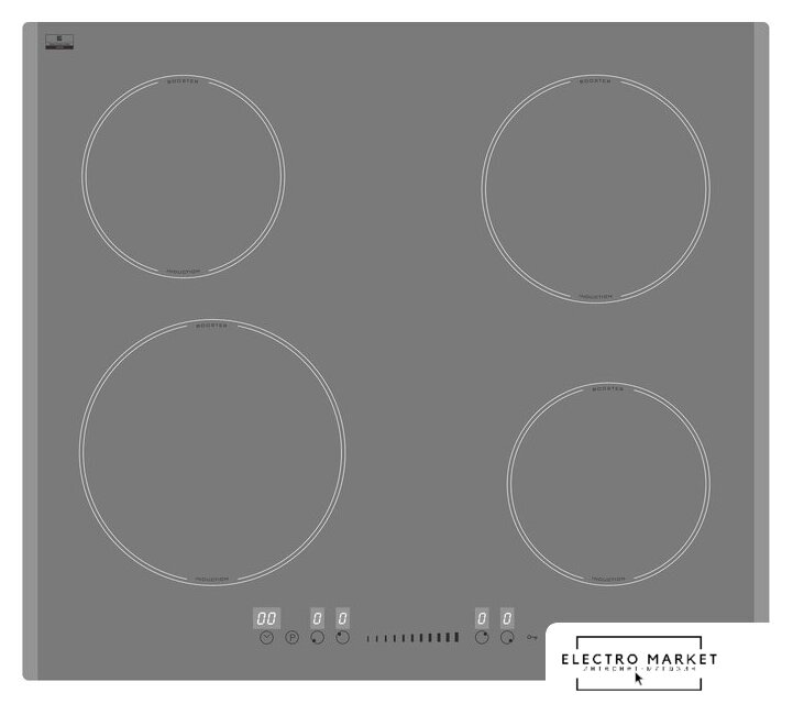 индукционная на 4 конфорки, cтеклокерамика, мощность: 6800 Вт, независимая установка, размеры (ШхГ): 59x52 см