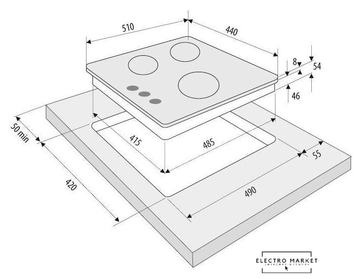 газовая на 4 конфорки, закаленное стекло, мощность: 7800 Вт, автоматический электроподжиг, газ-контроль, решетки: чугун, независимая установка, размеры (ШхГ): 59x50 см