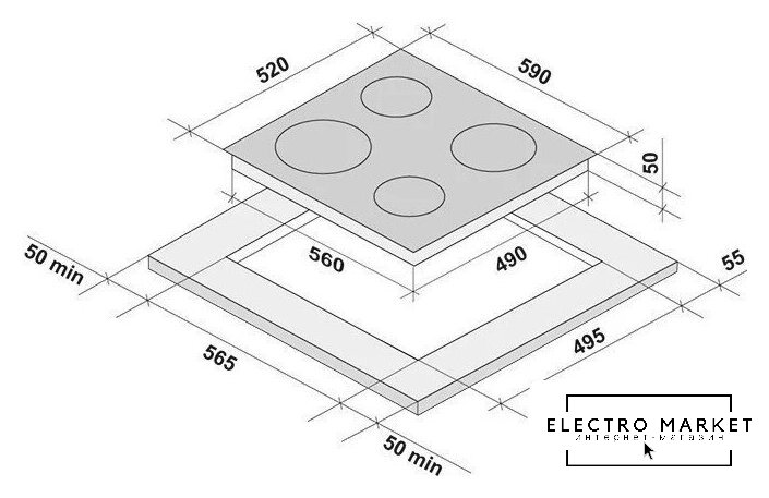 HiLight на 4 конфорки, cтеклокерамика, независимая установка
