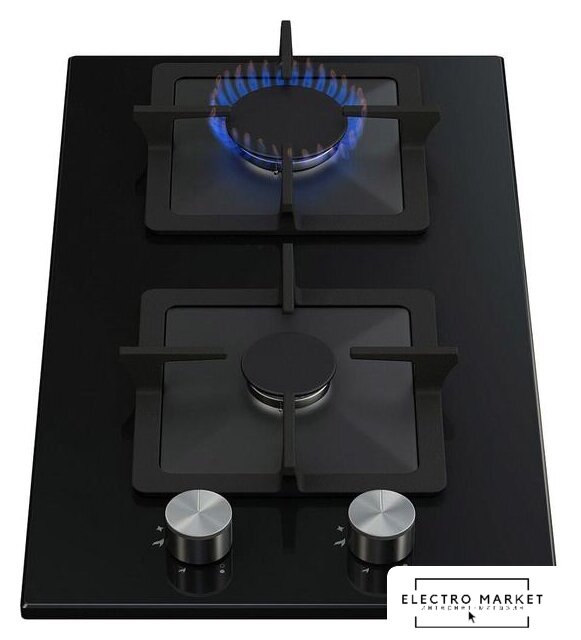 газовая на 4 конфорки, закаленное стекло, мощность: 7000 Вт, автоматический электроподжиг, газ-контроль, решетки: чугун, независимая установка, размеры (ШхГ): 58x51 см