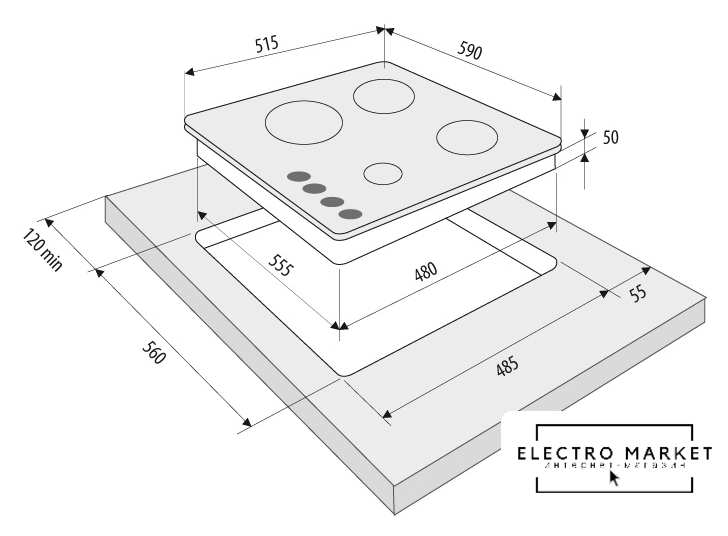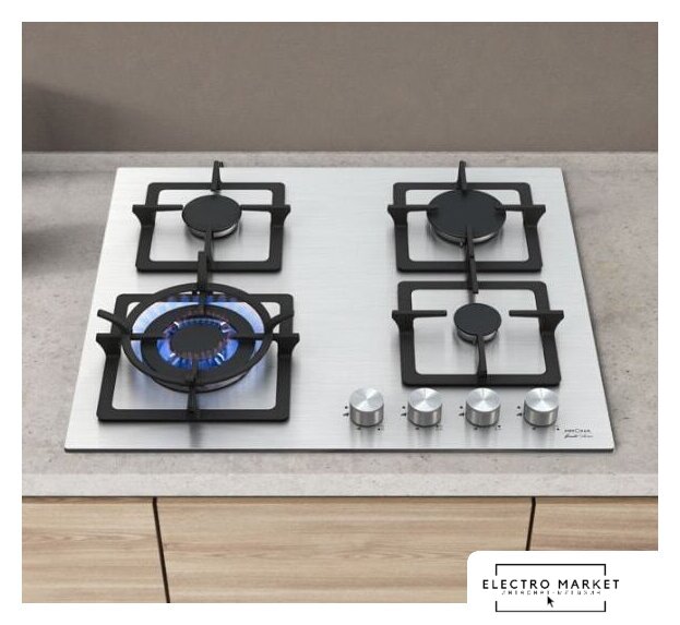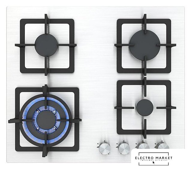 газовая на 4 конфорки, нержавеющая сталь, газ-контроль, решетки: чугун, независимая установка, размеры (ШхГ): 59x51 см