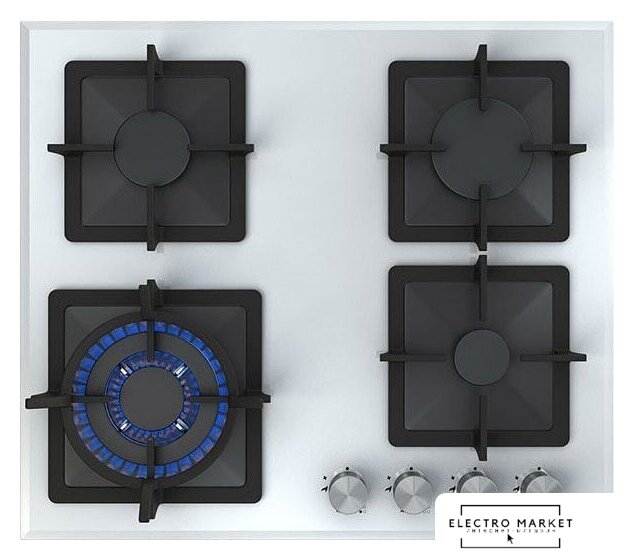 газовая на 4 конфорки, закаленное стекло, мощность: 7200 Вт, автоматический электроподжиг, газ-контроль, решетки: чугун, независимая установка, размеры (ШхГ): 59x51.5 см