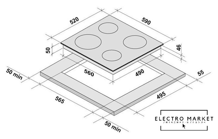 HiLight на 4 конфорки, cтеклокерамика, независимая установка, размеры (ШхГ): 59x52 см