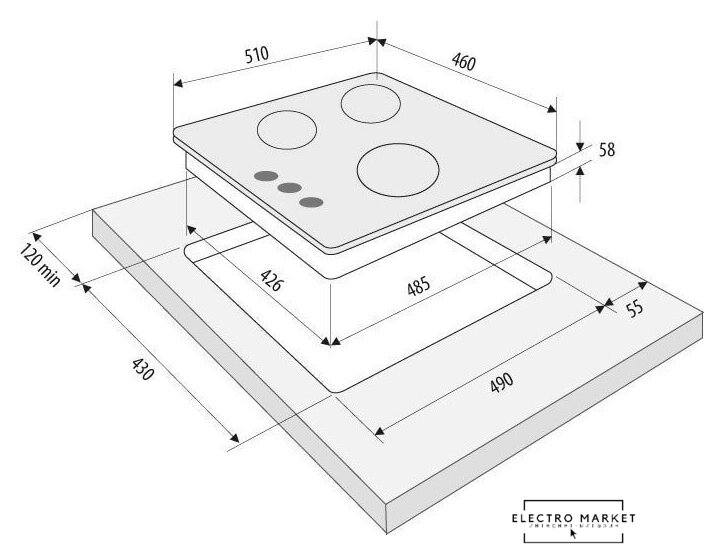 | Подробная информация о конфорках | Передняя левая, кВт: 1,0Передняя правая, кВт: 3,8 (WOK)Задняя левая, кВт: 1,75 |