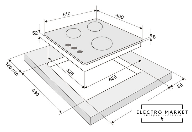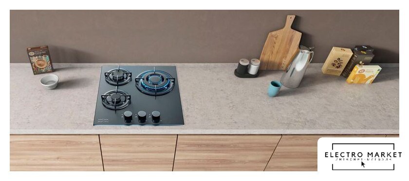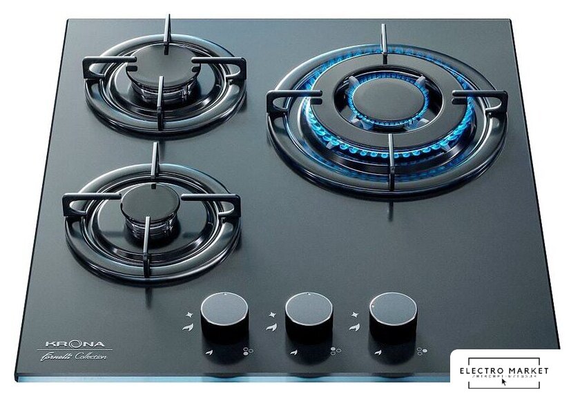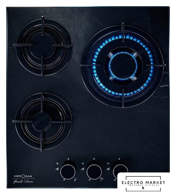 газовая на 3 конфорки, закаленное стекло, мощность: 6200 Вт, автоматический электроподжиг, газ-контроль, решетки: чугун, независимая установка, размеры (ШхГ): 45x51 см