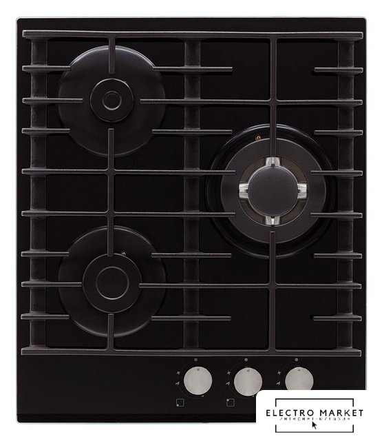 газовая на 3 конфорки, закаленное стекло, мощность: 5100 Вт, газ-контроль, решетки: чугун, независимая установка, размеры (ШхГ): 46x51.5 см