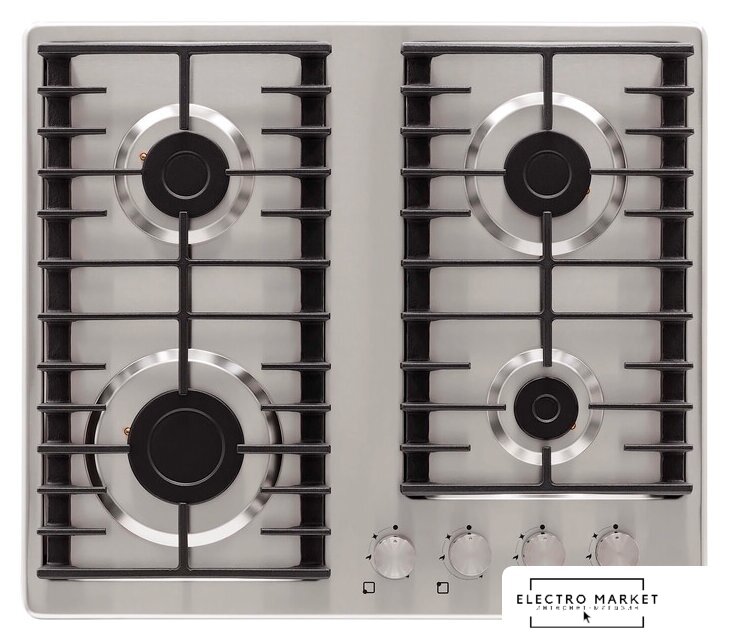 газовая на 4 конфорки, нержавеющая сталь, автоматический электроподжиг, газ-контроль, решетки: чугун, независимая установка, размеры (ШхГ): 60x51.5 см