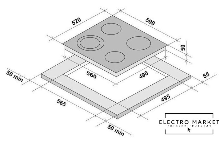 HiLight на 4 конфорки, cтеклокерамика, независимая установка, размеры (ШхГ): 58x51 см