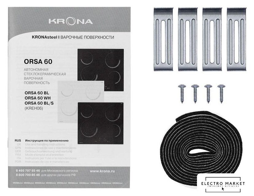 HiLight на 4 конфорки, cтеклокерамика, мощность: 6000 Вт, независимая установка, размеры (ШхГ): 58x51 см
