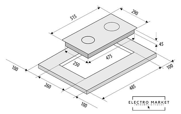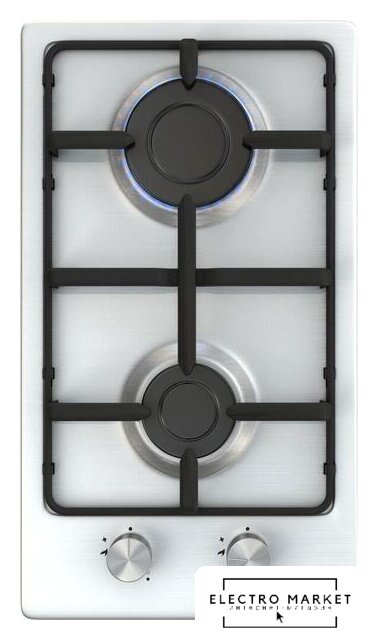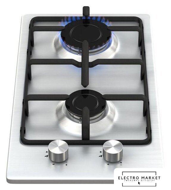 газовая на 2 конфорки, закаленное стекло, мощность: 4400 Вт, автоматический электроподжиг, газ-контроль, решетки: чугун, независимая установка, размеры (ШхГ): 30x51 см