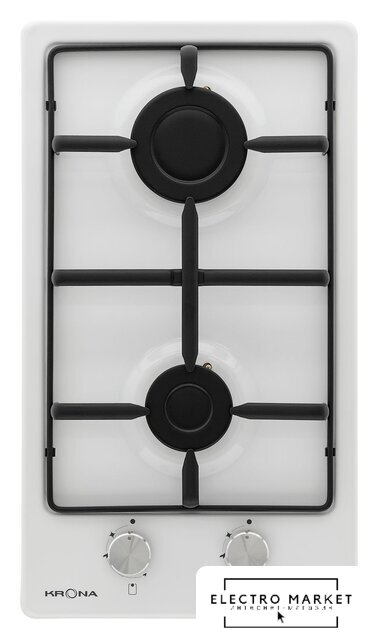 газовая на 2 конфорки, закаленное стекло, мощность: 4400 Вт, автоматический электроподжиг, газ-контроль, решетки: чугун, независимая установка, размеры (ШхГ): 30x51 см