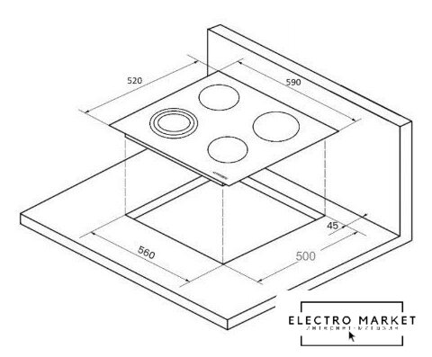 HiLight на 4 конфорки, cтеклокерамика, мощность: 6700 Вт, автоматика закипания, независимая установка, размеры (ШхГ): 59.2x49.2 см