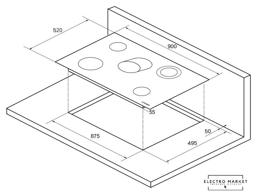 HiLight на 4 конфорки, cтеклокерамика, мощность: 6000 Вт, независимая установка, размеры (ШхГ): 60x51 см