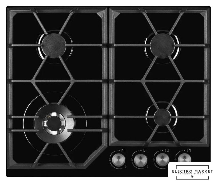 газовая на 4 конфорки, закаленное стекло, мощность: 8500 Вт, автоматический электроподжиг, газ-контроль, решетки: чугун, независимая установка, размеры (ШхГ): 60x52 см