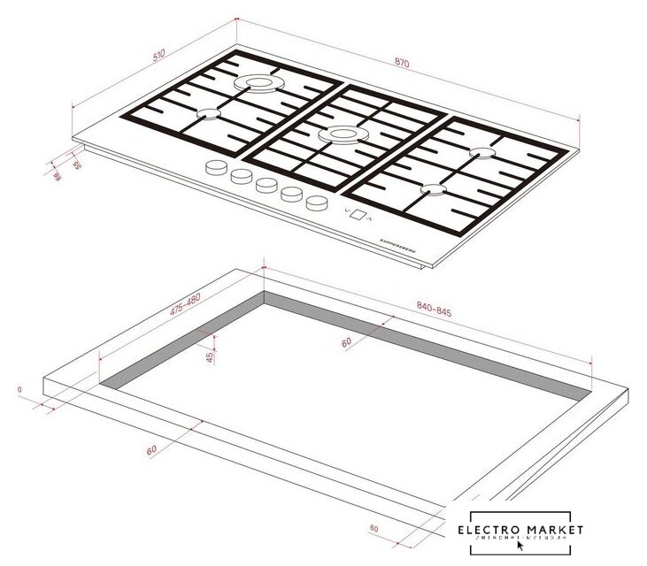газовая на 5 конфорок, закаленное стекло, мощность: 10250 Вт, автоматический электроподжиг, газ-контроль, решетки: чугун, независимая установка, размеры (ШхГ): 86x52 см