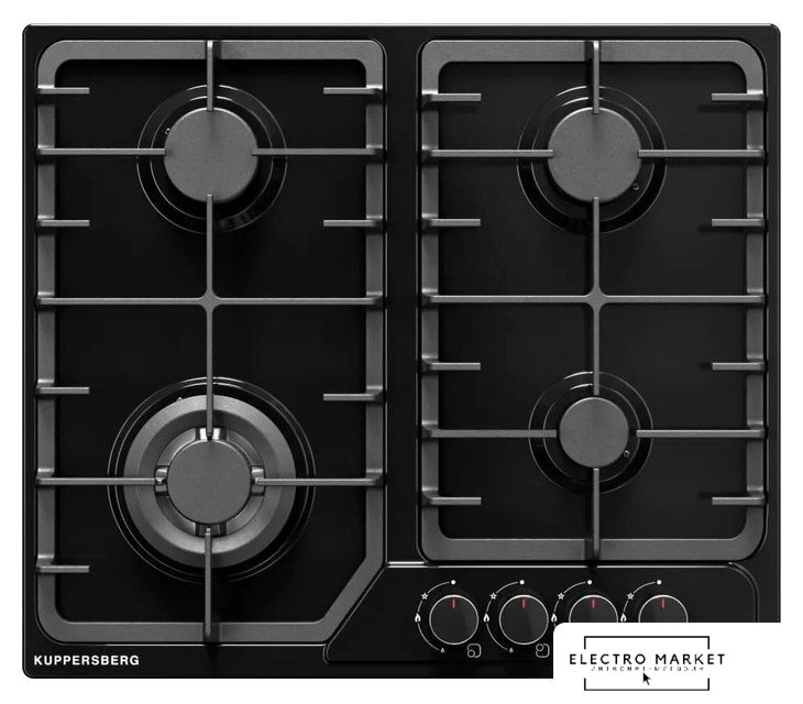 газовая на 4 конфорки, закаленное стекло, мощность: 7000 Вт, автоматический электроподжиг, газ-контроль, решетки: чугун, независимая установка