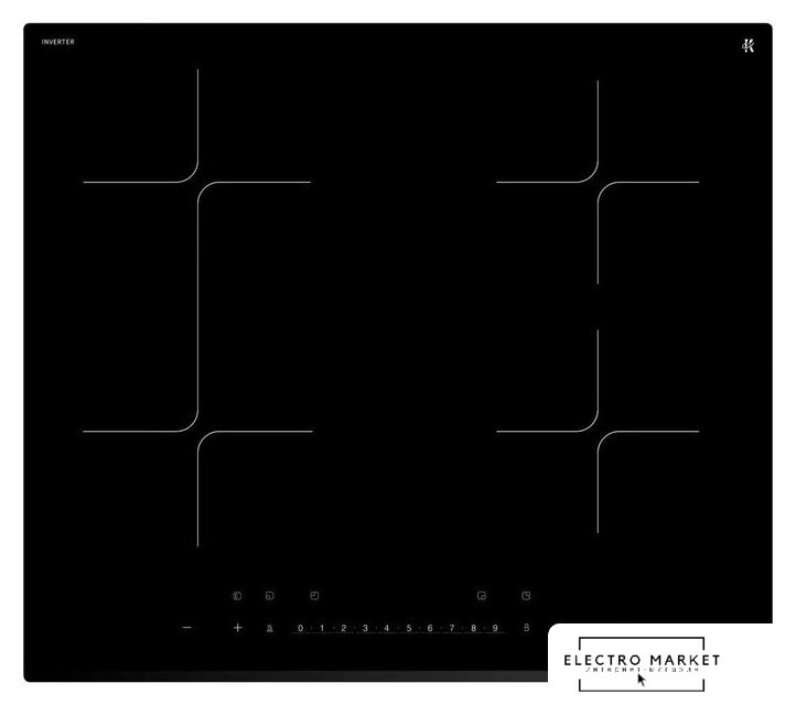 индукционная на 4 конфорки, cтеклокерамика, мощность: 7400 Вт, независимая установка, размеры (ШхГ): 59x52 см