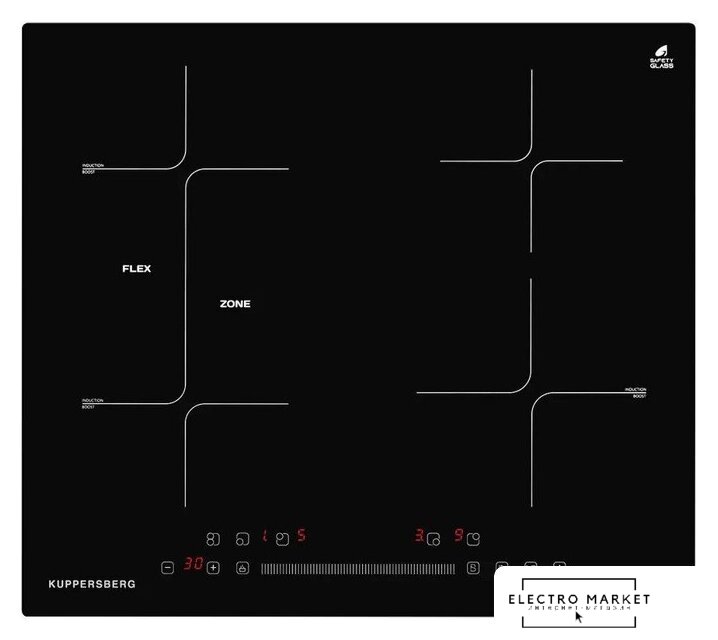 индукционная на 4 конфорки, cтеклокерамика, независимая установка, размеры (ШхГ): 60x51 см