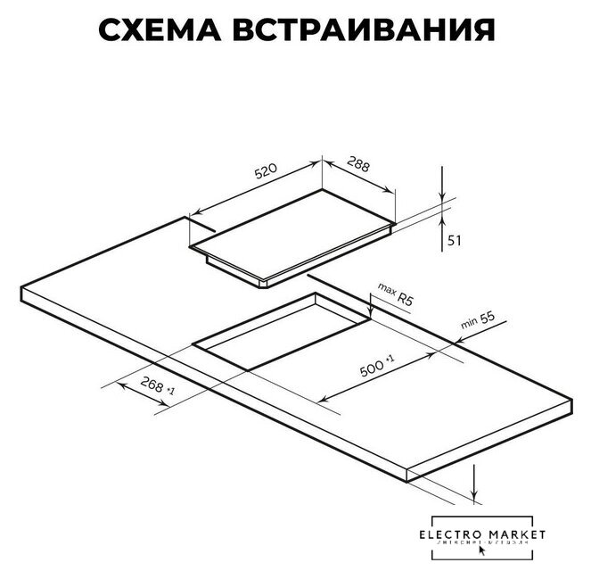 HiLight на 2 конфорки, cтеклокерамика, мощность: 3200 Вт, независимая установка, размеры (ШхГ): 29x52 см
