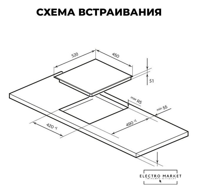 HiLight на 3 конфорки, cтеклокерамика, мощность: 4200 Вт, независимая установка, размеры (ШхГ): 45x52 см