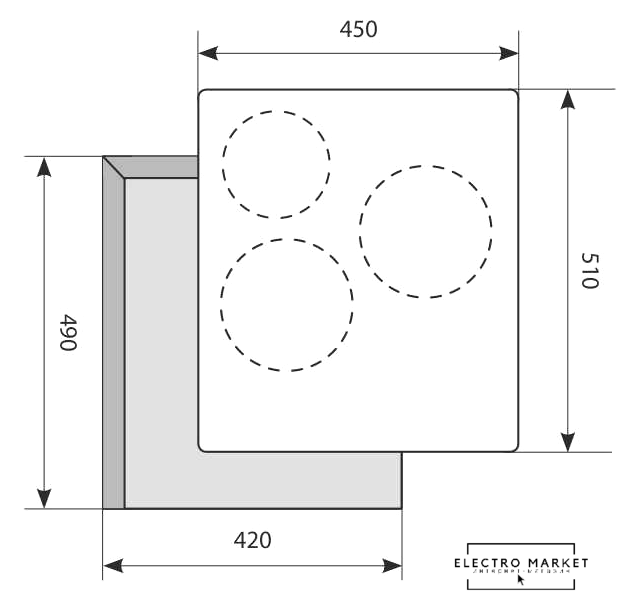 HiLight на 3 конфорки, cтеклокерамика, мощность: 4200 Вт, независимая установка, размеры (ШхГ): 45x52 см