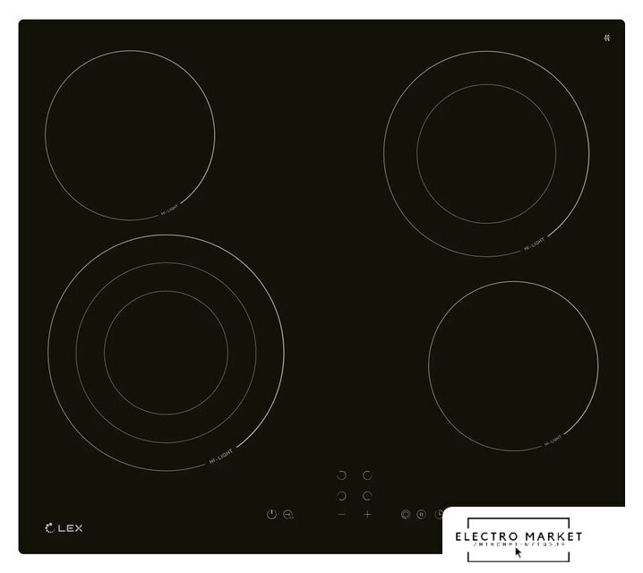 HiLight на 4 конфорки, cтеклокерамика, мощность: 6300 Вт, автоматика закипания, независимая установка, размеры (ШхГ): 57.5x51.8 см