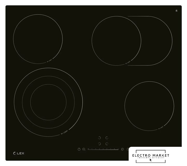 HiLight на 4 конфорки, cтеклокерамика, мощность: 6000 Вт, независимая установка, размеры (ШхГ): 59x52 см
