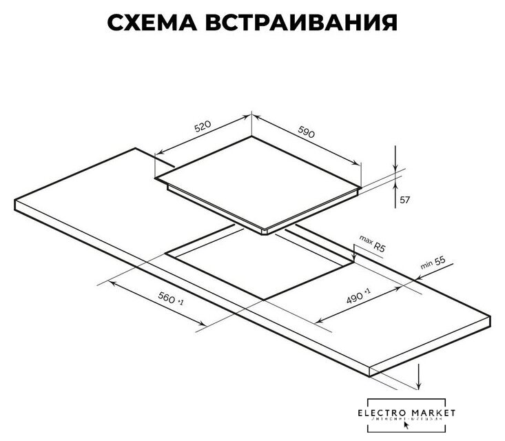 индукционная на 4 конфорки, cтеклокерамика, мощность: 7200 Вт, независимая установка, размеры (ШхГ): 59x52 см