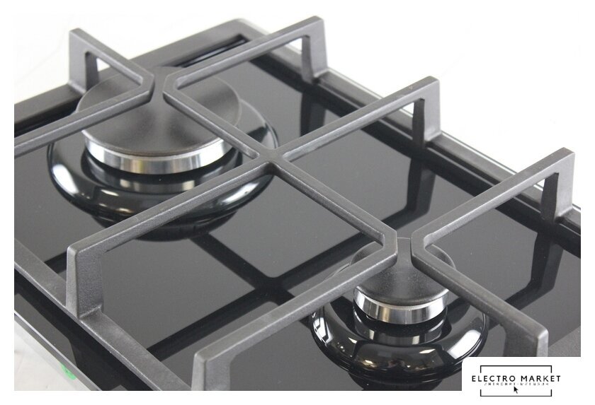 газовая на 3 конфорки, закаленное стекло, мощность: 6200 Вт, автоматический электроподжиг, газ-контроль, решетки: чугун, независимая установка, размеры (ШхГ): 45x51 см
