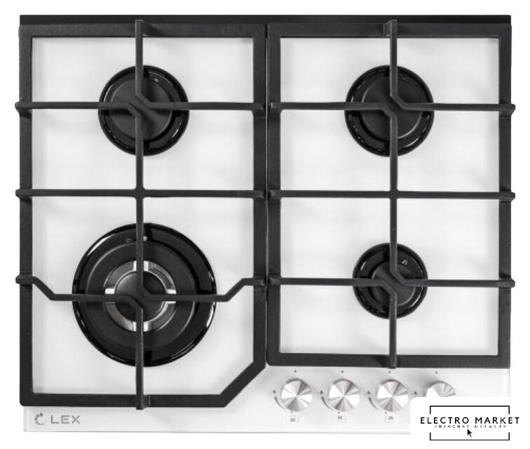 газовая на 4 конфорки, закаленное стекло, мощность: 7600 Вт, автоматический электроподжиг, газ-контроль, решетки: чугун, размеры (ШхГ): 60x52.5 см