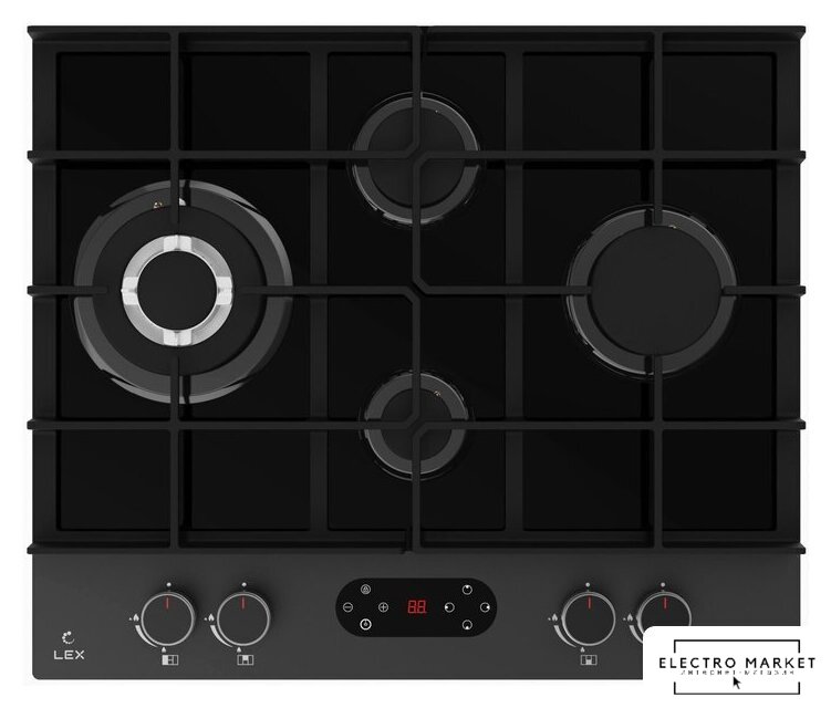 газовая на 4 конфорки, закаленное стекло, мощность: 7650 Вт, автоматический электроподжиг, газ-контроль, решетки: чугун, независимая установка, размеры (ШхГ): 58.5x51 см
