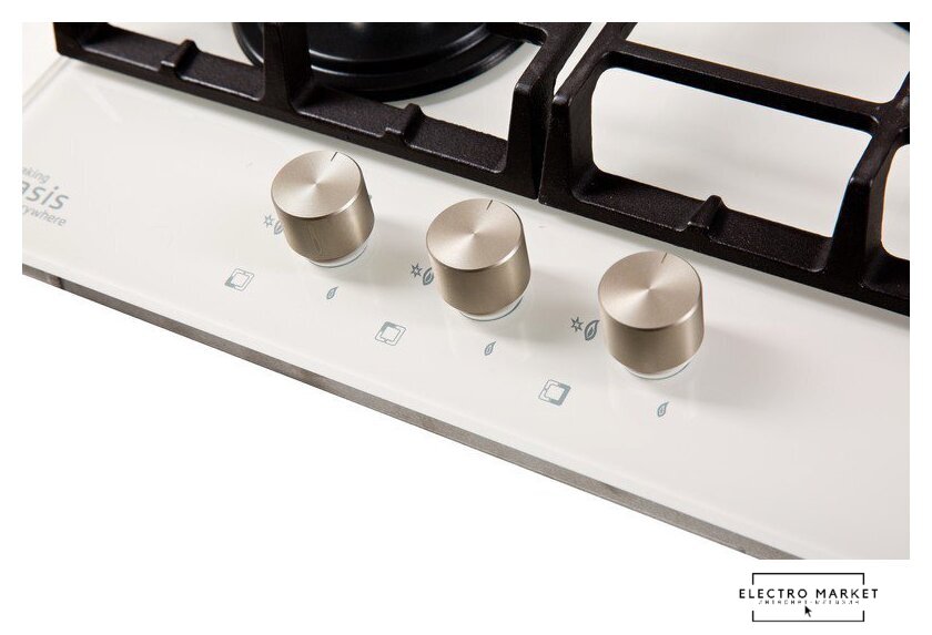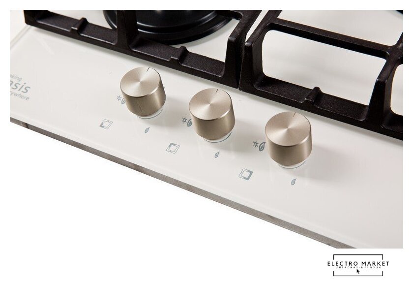 газовая на 4 конфорки, закаленное стекло, мощность: 8500 Вт, автоматический электроподжиг, газ-контроль, решетки: чугун, независимая установка, размеры (ШхГ): 60x51 см