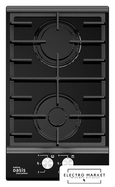 газовая на 2 конфорки, эмалированная сталь, автоматический электроподжиг, газ-контроль, решетки: чугун, независимая установка, размеры (ШхГ): 30x53 см