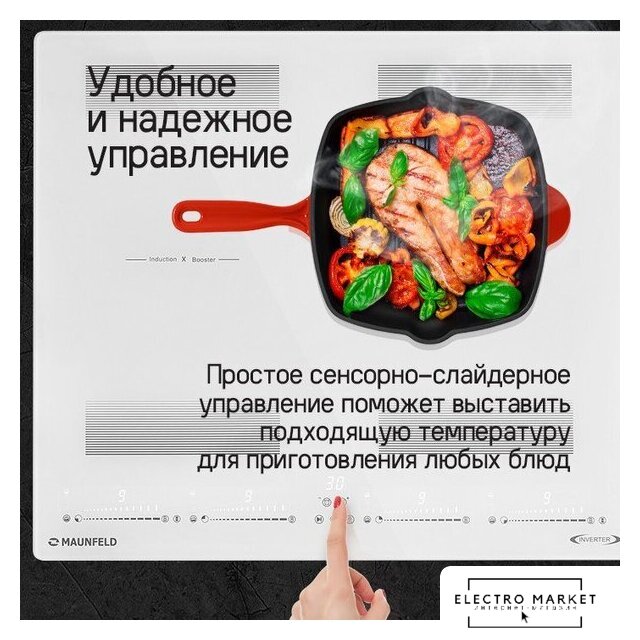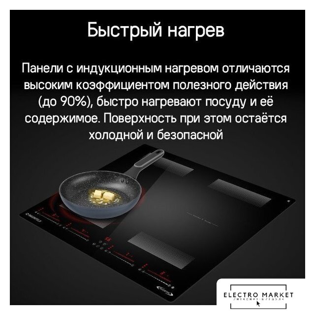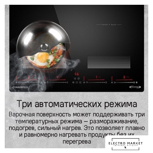 индукционная на 3 конфорки, cтеклокерамика, мощность: 7350 Вт, независимая установка, размеры (ШхГ): 59.2x52.2 см
