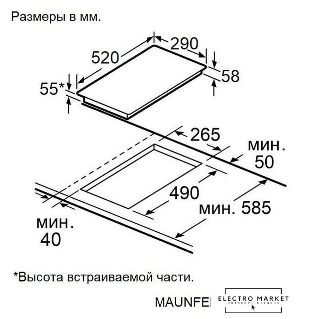 индукционная на 3 конфорки, cтеклокерамика, мощность: 5600 Вт, независимая установка, размеры (ШхГ): 45x52 см