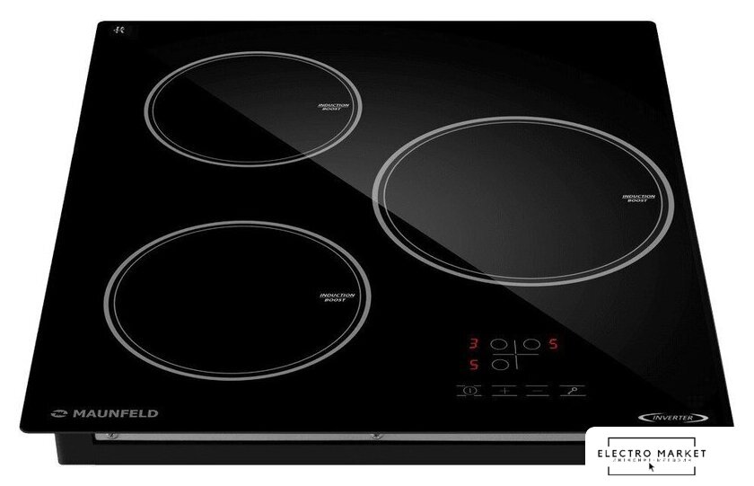 индукционная на 3 конфорки, cтеклокерамика, мощность: 6200 Вт, независимая установка, размеры (ШхГ): 45x52 см