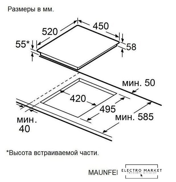 индукционная на 3 конфорки, cтеклокерамика, мощность: 6200 Вт, независимая установка, размеры (ШхГ): 45x52 см
