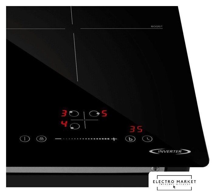 | Подробная информация о конфорках | Одна конфорка диаметром 160 мм мощностью 1200 Вт (с бустером до 1500 Вт), одна конфорка диаметром 180 мм мощностью 1800 Вт (с бустером до 2100 Вт), одна конфорка диаметром 210 мм мощностью 2200 Вт (с бустером до 2600 Вт). |