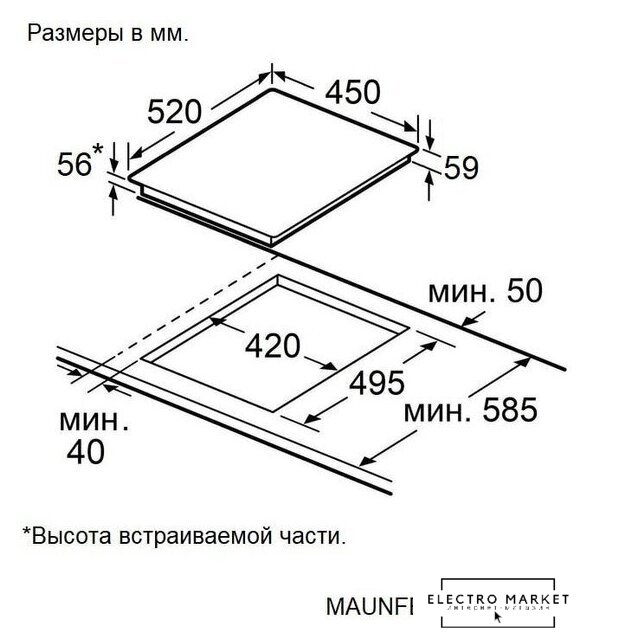 индукционная на 3 конфорки, cтеклокерамика, мощность: 6200 Вт, независимая установка, размеры (ШхГ): 45x52 см