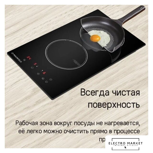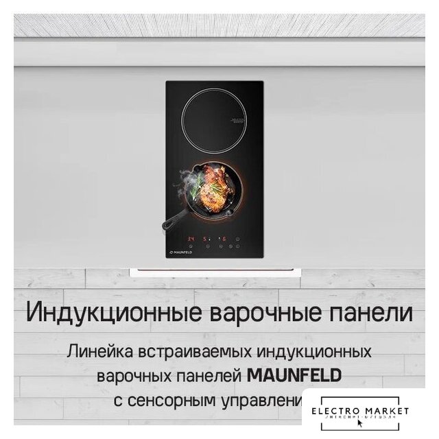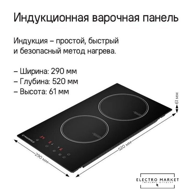 индукционная на 2 конфорки, cтеклокерамика, независимая установка, размеры (ШхГ): 28.8x52 см