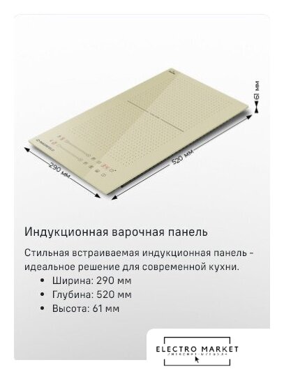 индукционная на 3 конфорки, cтеклокерамика, мощность: 5800 Вт, независимая установка, размеры (ШхГ): 45x52 см