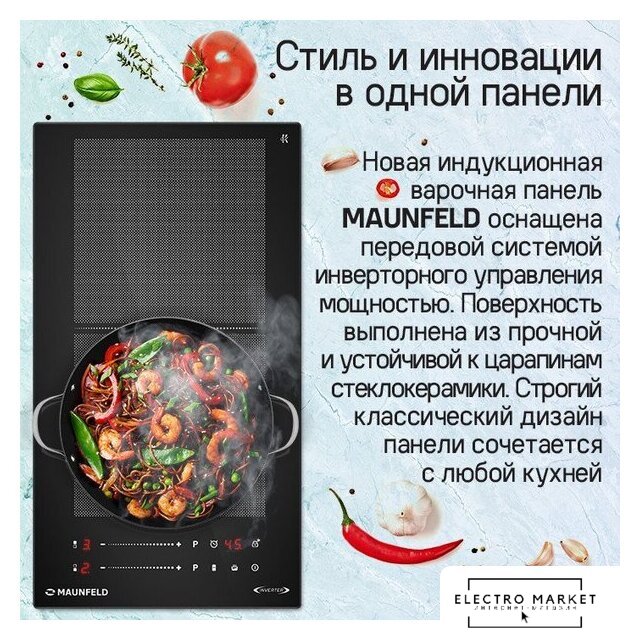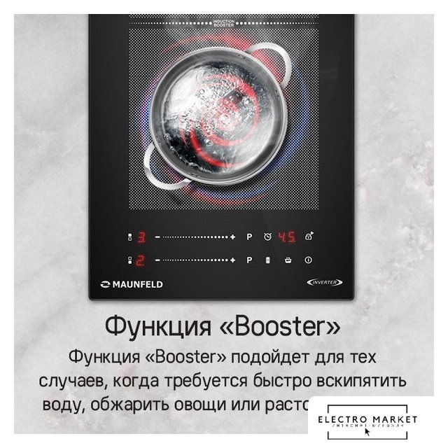 Подробная информация о конфорках | 1х1500 (бустер 2000 Вт)1х2000 (бустер 2800 Вт) |