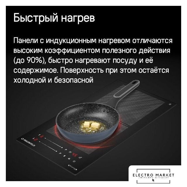 индукционная на 3 конфорки, cтеклокерамика, мощность: 4900 Вт, независимая установка, размеры (ШхГ): 45x52.2 см